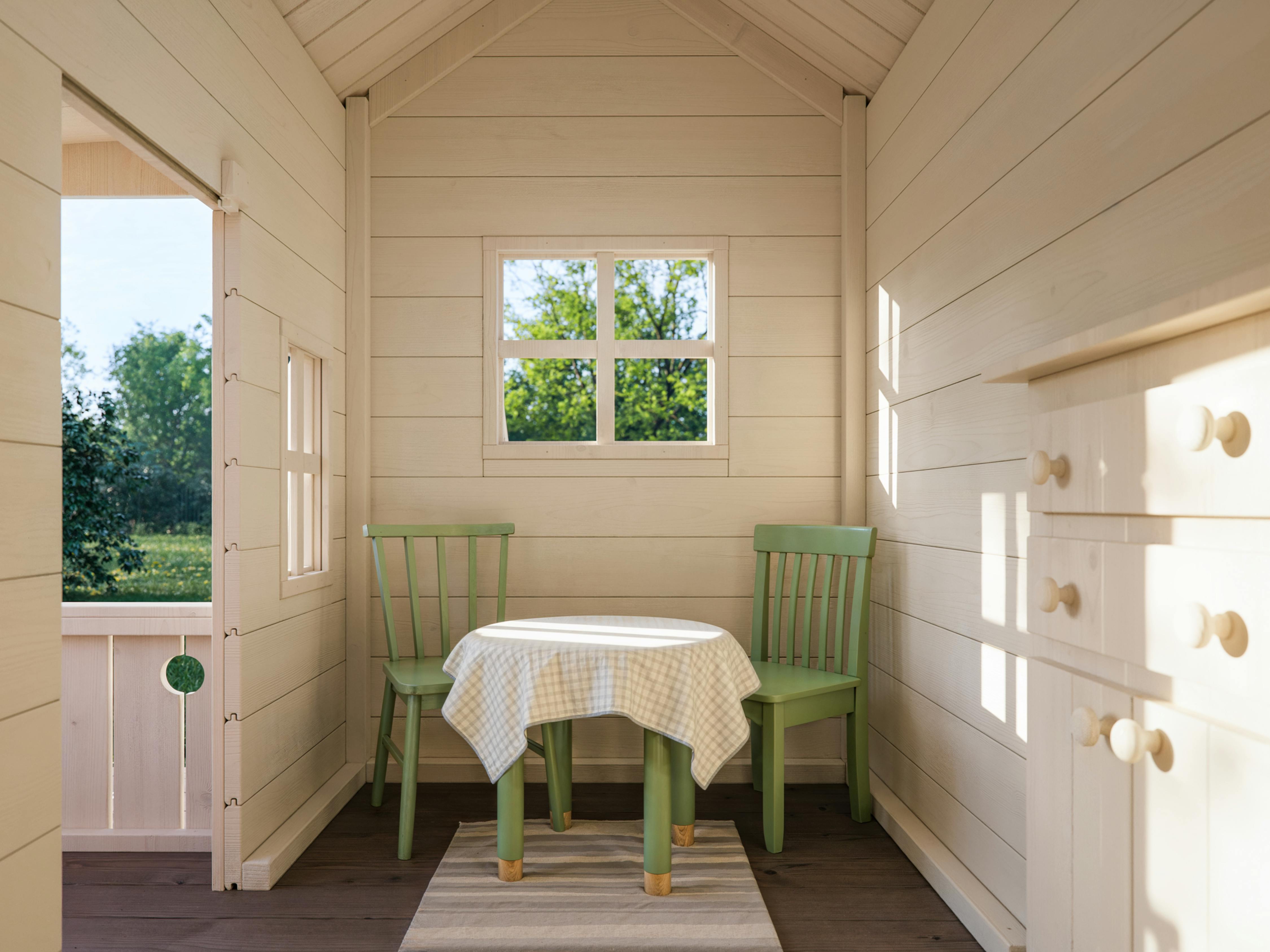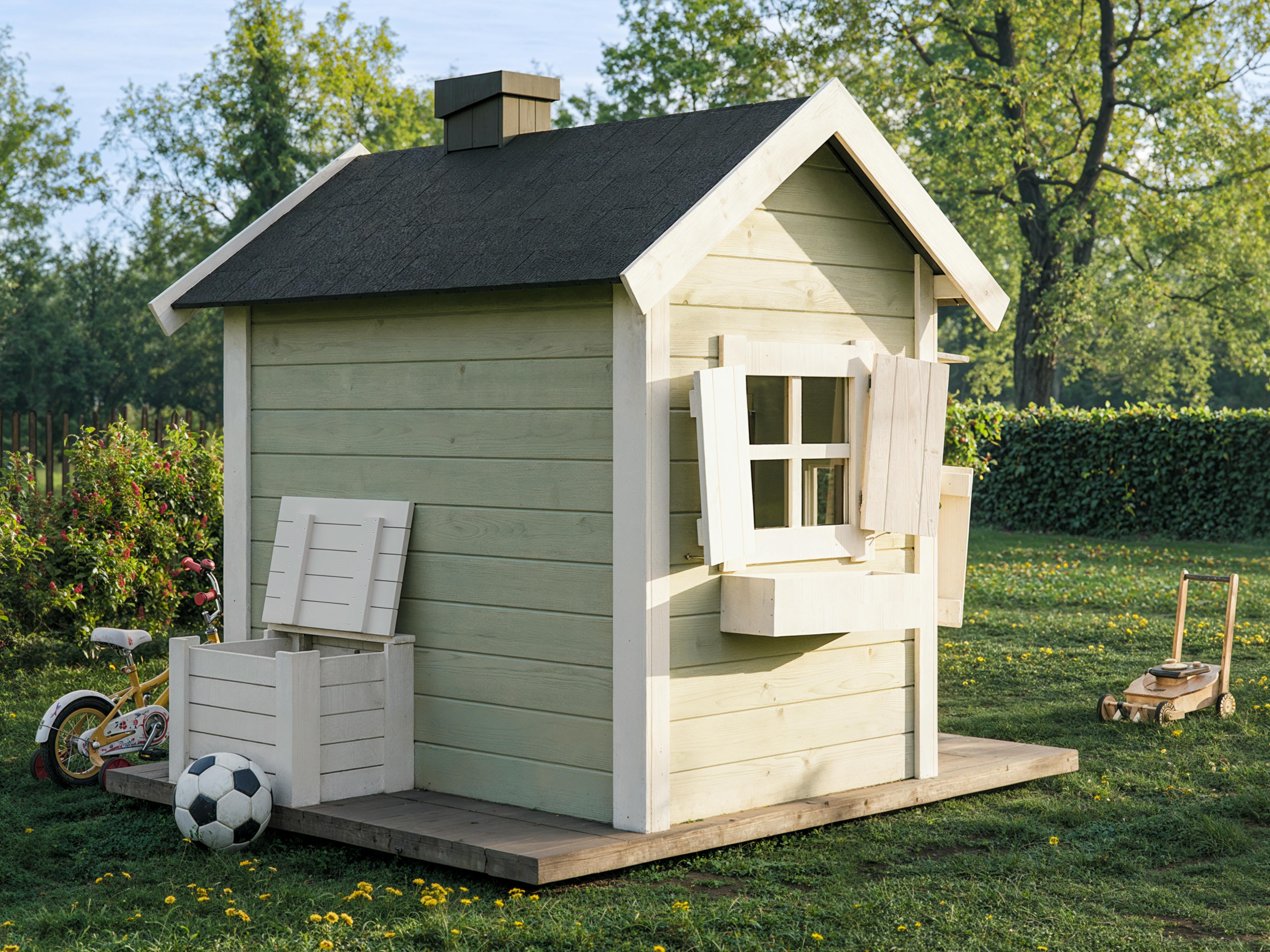 Lekestuen leveres ubehandlet og kan males i sprakende Pippi-farger. Vil du ha hjelp med nyansene, finner du en fargeguide under spesifikasjonene. Vi vil også inspirere deg til å bruke pallen som huset leveres på. Med hjelp av våre instruksjoner kan du bygge en benk, en plantekasse eller en skattekiste til alle gullpengene. Sett gjerne kisten ved utgangen av den hemmelige gangen – så kan barna krype gjennom og overraske ved å dukke opp av kisten! Du finner tegningene våre blant manualene, men det går selvfølgelig like fint å finne på egne morsomme tilbehør!